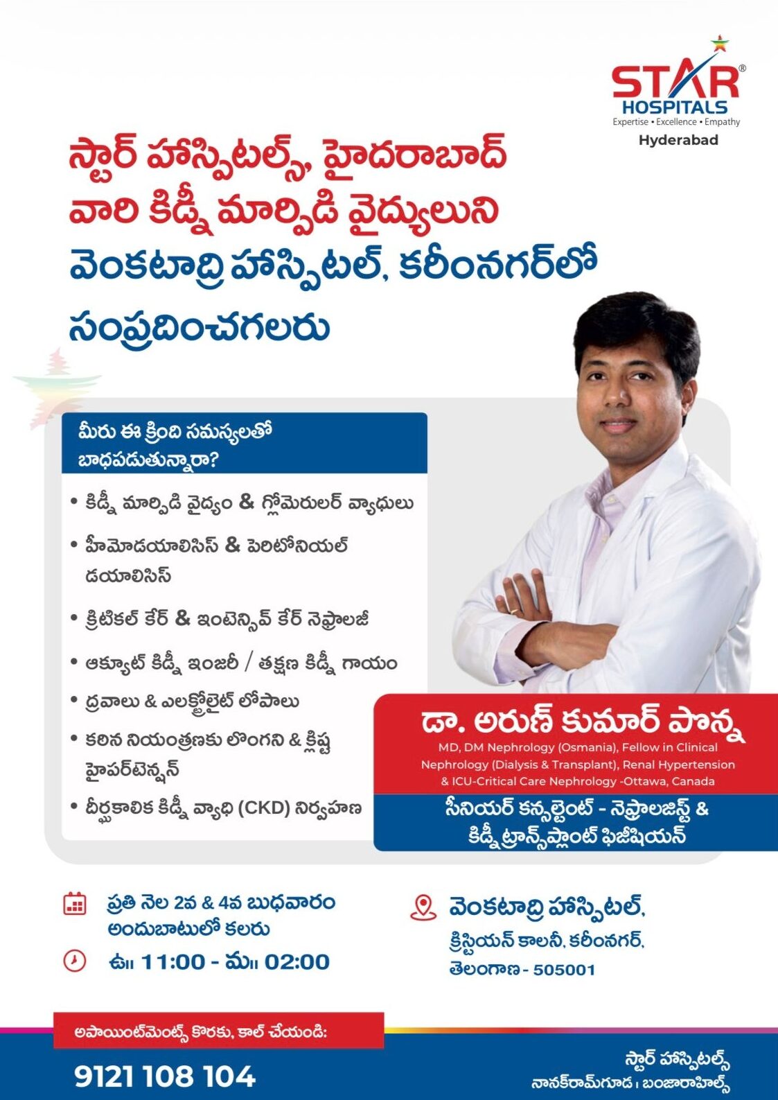 Dr. Arun Kumar ponna sir best nephrologist in hyderabad somajiguda hospital